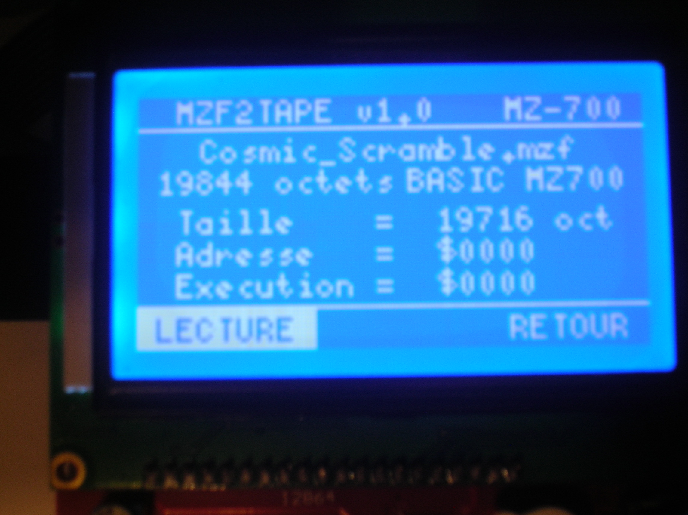 I took over the work of hlide to be able to offer an interface for reading the files MZF, M12, MZT, BIN using a graphical display reprap discount full graphic smart controller. It contains a built-in SD drive and connects easily to an ATMEGA2560.