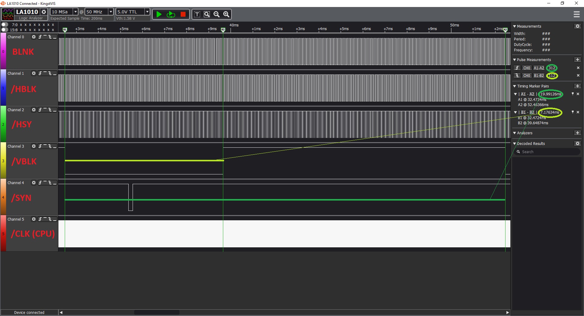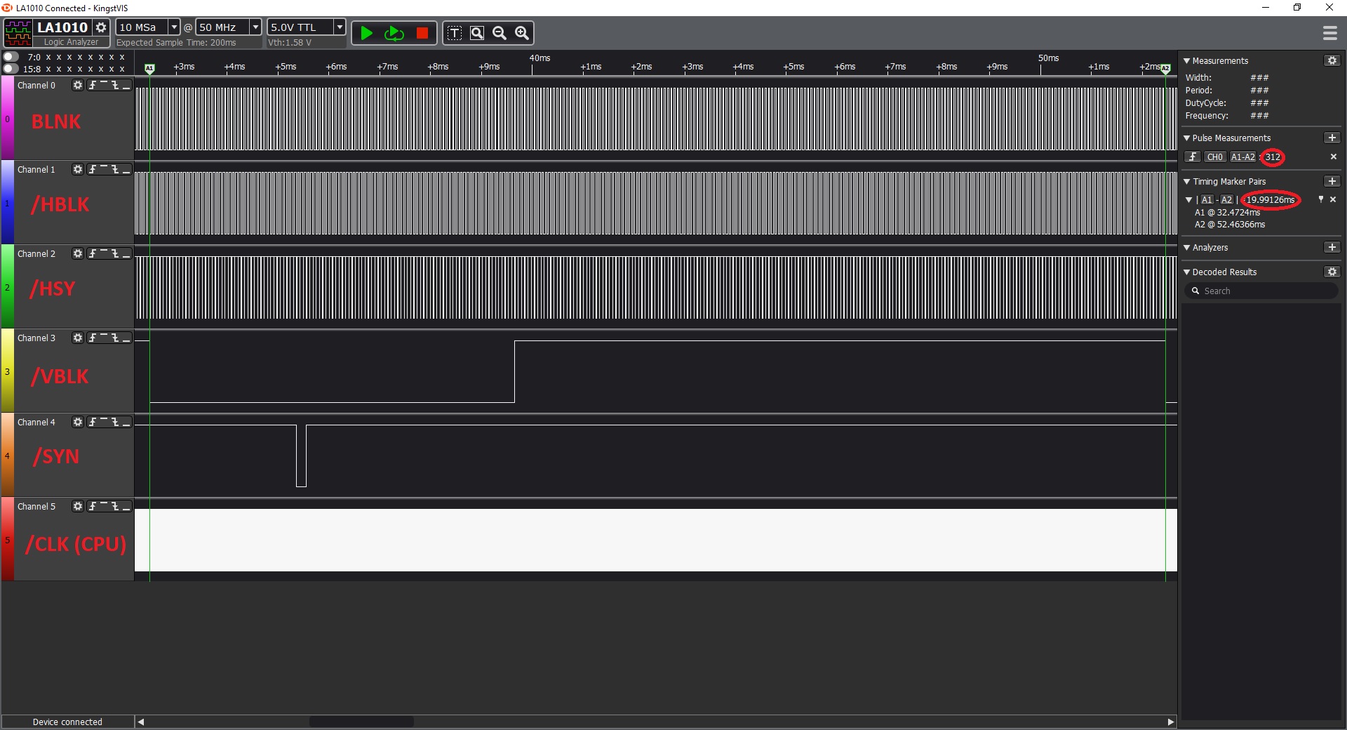 My logic analyzer tells me there is 312 BLNK signals per frame. So how does it happen the timer #2 is missing 6 BLNKs?