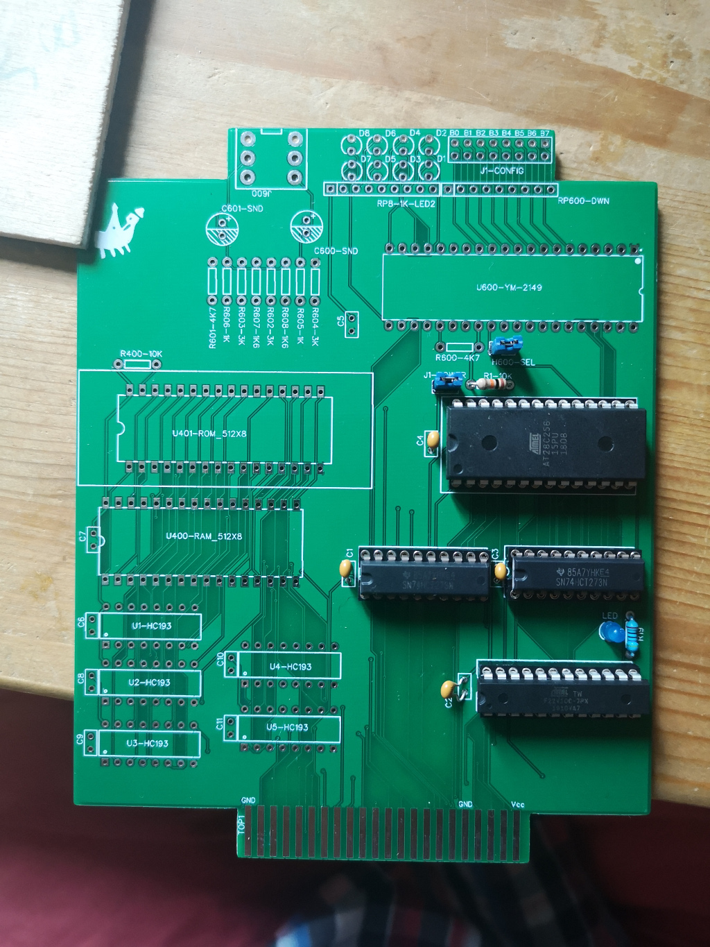 So, the second part of the PCB has been populated - the sound IC has been added and I get a sound, can turn on/off 8 LEDs and have some configuration switches for further project.