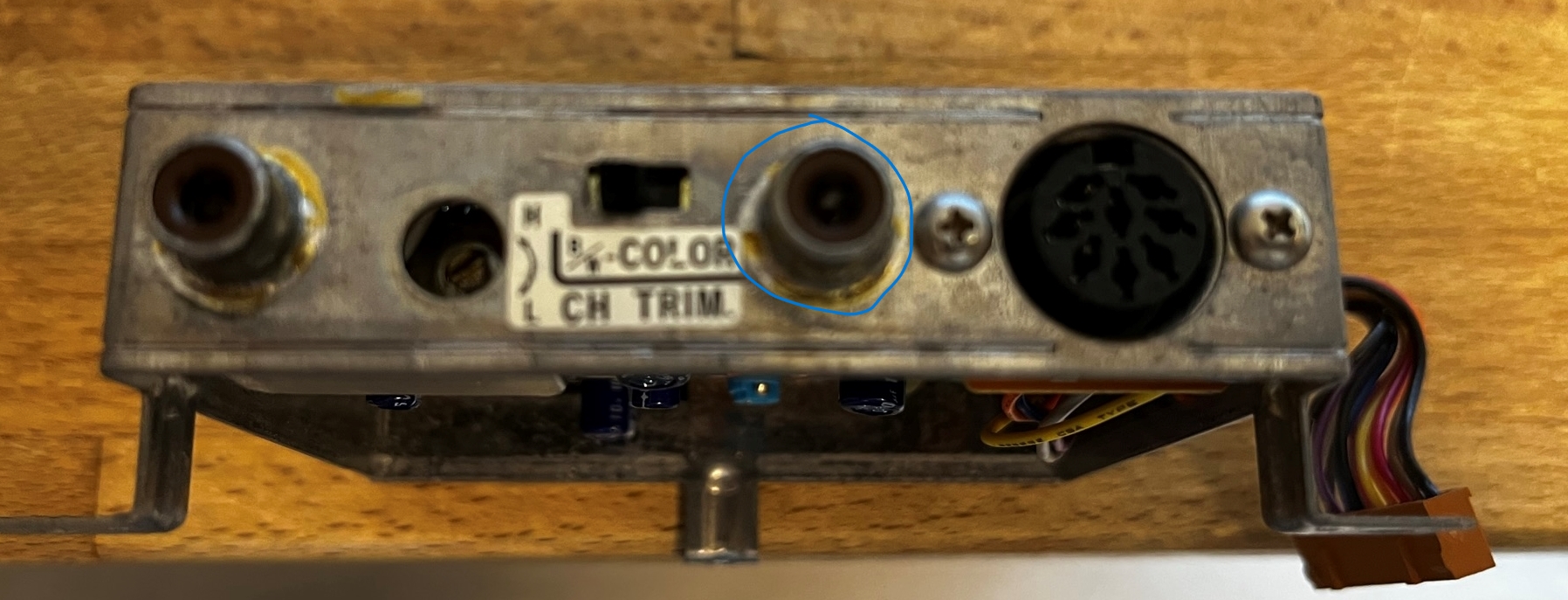As the computer did not come with a video cable and I do not have yet soldered something fitting the DIN RGB connector I figured I will simply switch the video output to B/W with the switch next to cinch plug and use this one. Upon turning on the computer with the monitor connected the fuse in my house went BOOM.